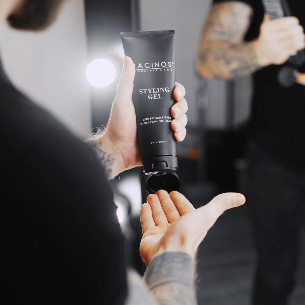Formulated with water-soluble ingredients, Pacinos Styling Gel will provide an all day hold without the dry flakes and build up. It dries with a strong hold so you can rest assured that your hair will be in place all day.