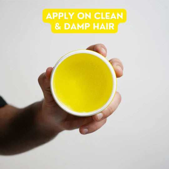 Using two fingers, scoop a small amount onto your hands. Rub evenly between palms and spread through hair. Works well on damp or dry hair.